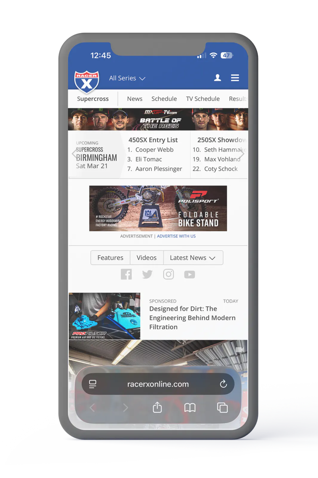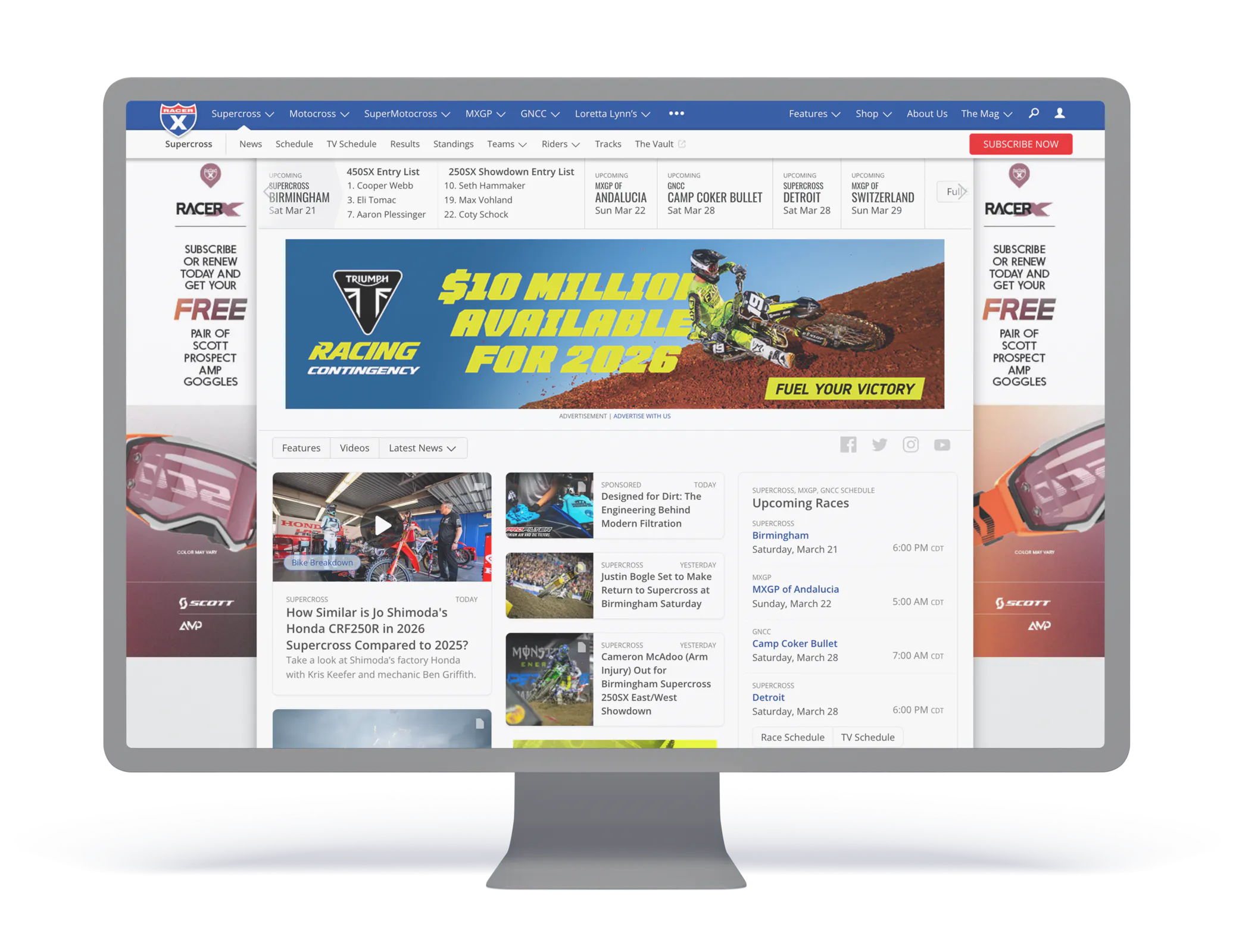Your homepage header ads will display at the top of the racerxonline.com homepage.